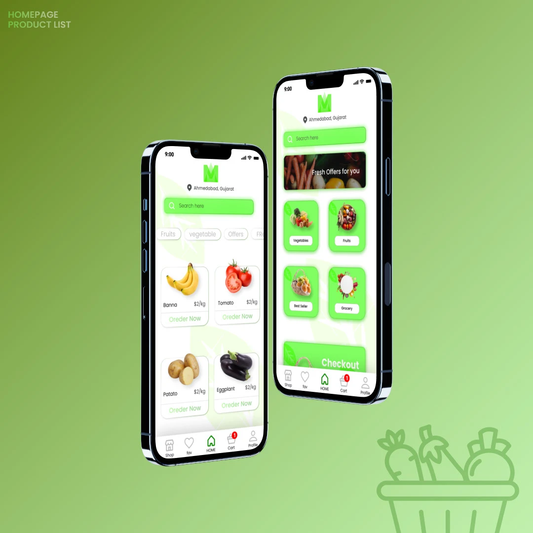 Designed a full mobile app UI/UX experience for a fresh vegetable marketplace, optimizing for discoverability, conversion, and a delightful shopping experience.